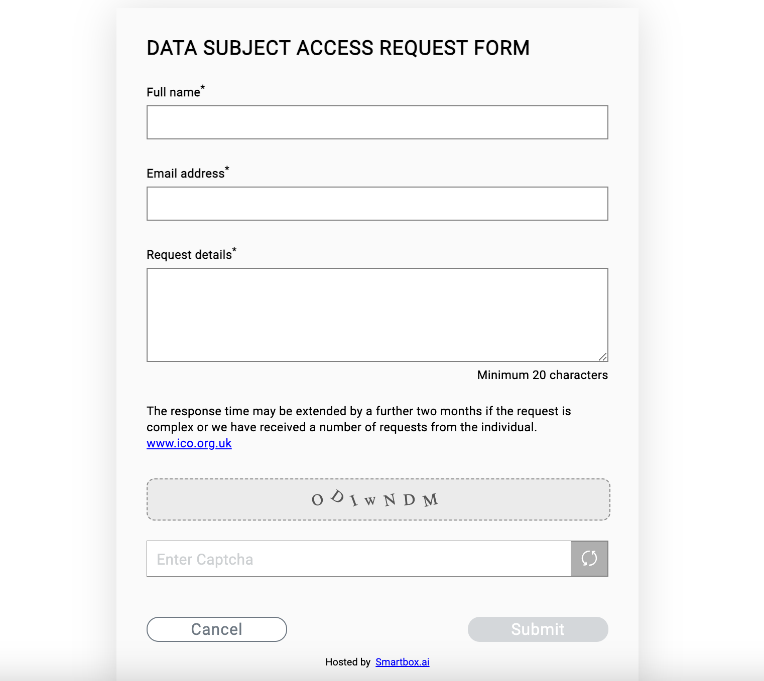 To streamline your Subject Access Request processing, you can add an intake form to your website that will feed directly into the Request Tracker.