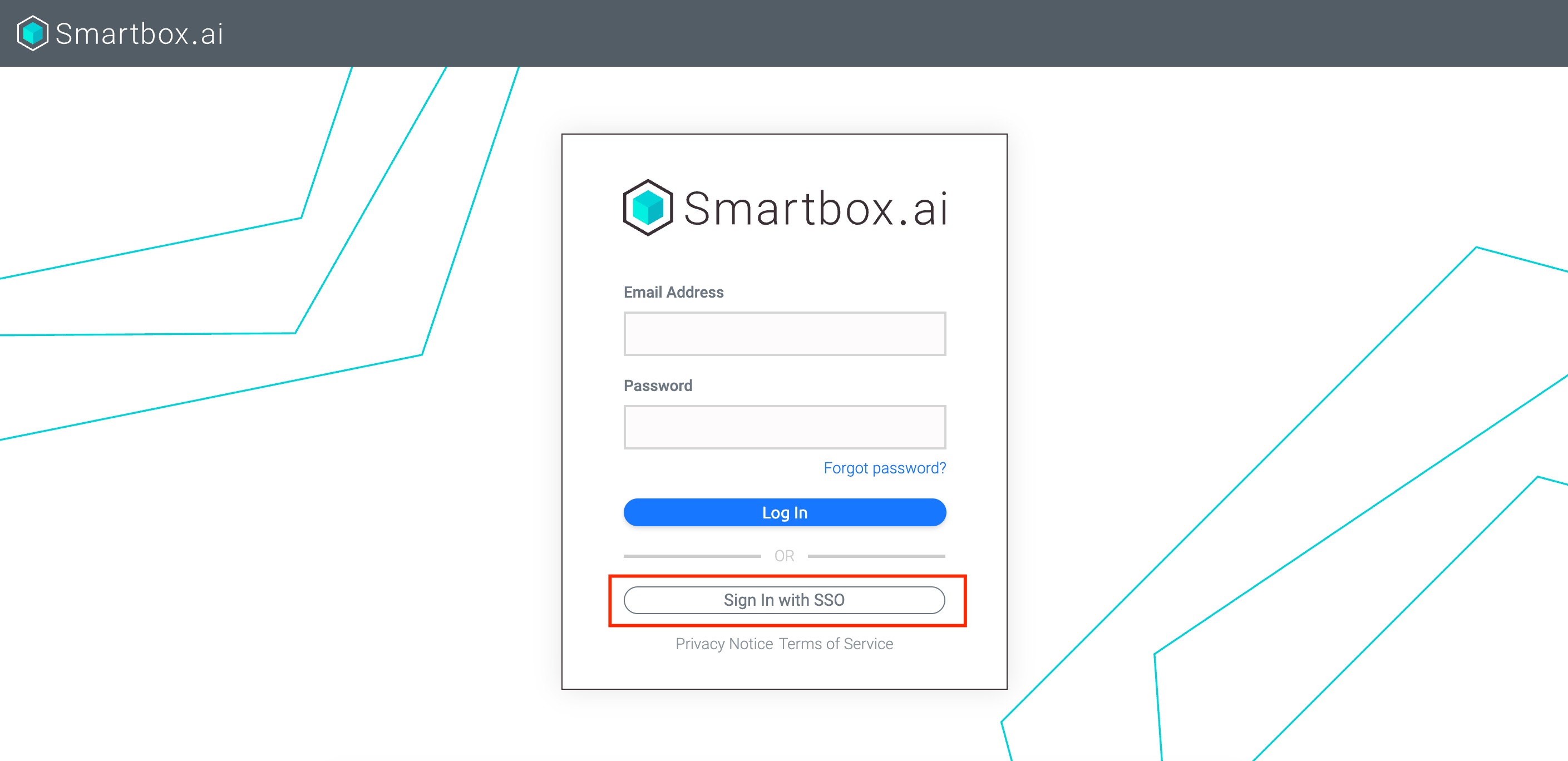 - On the Smartbox login page, click the "Sign In with SSO" button.